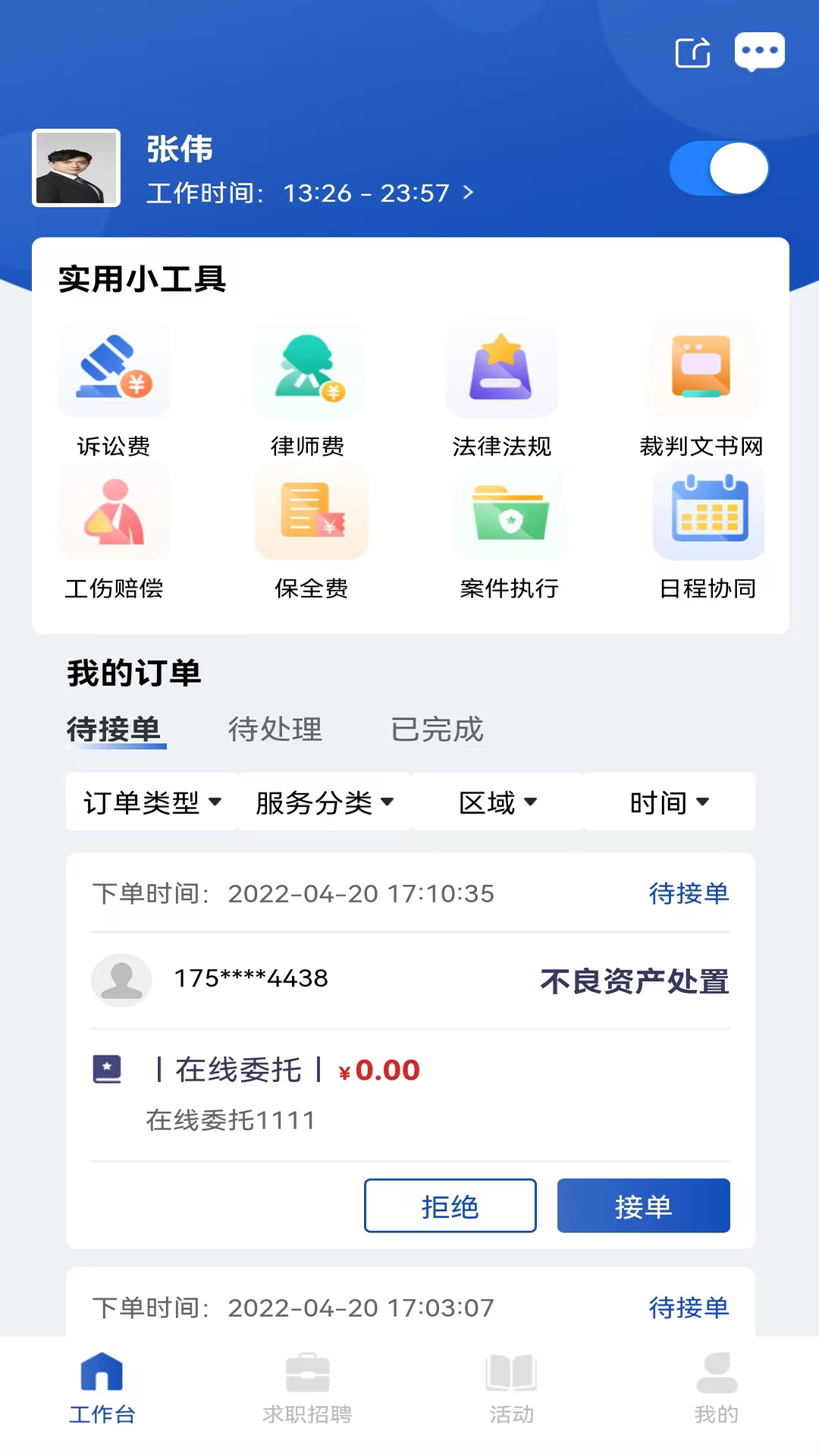 律咚咚律师端APP为用户和律师提供了一个高效、便捷的法律服务平台,用户可以通过软件获取最新的法律新闻资讯,接单办公,查看法律百科,解决各类法律问题。软件功能丰富,操作简便,无论是法律专业人士还是普通用户,都能从中受益,享受高质量的法律服务体验。