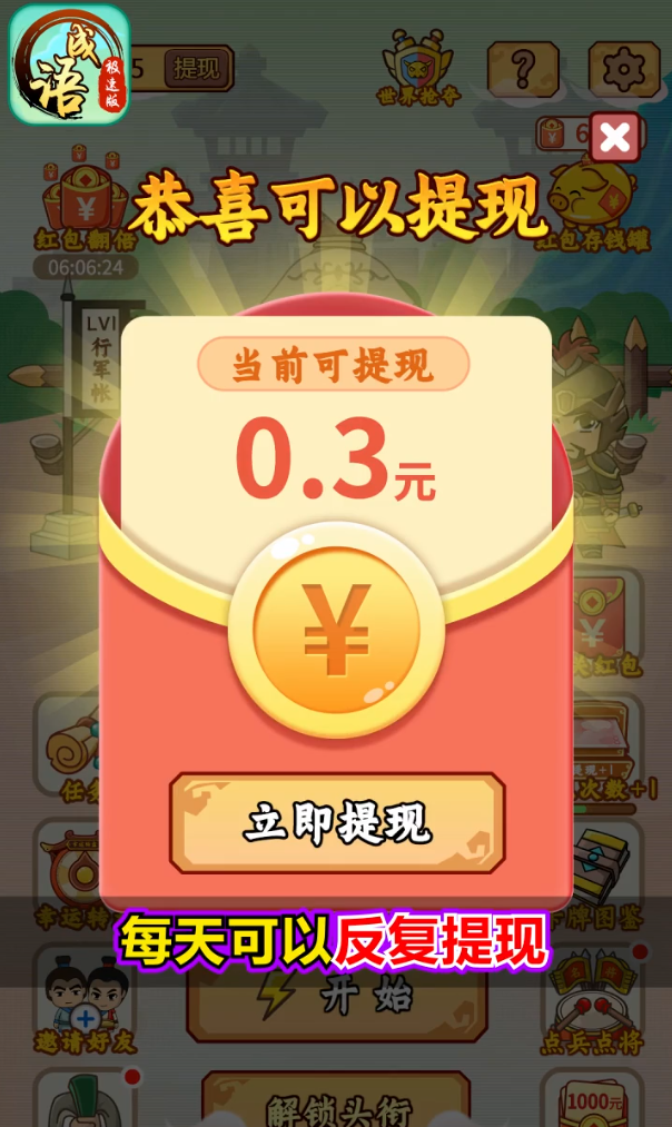 成语极速版红包版是一款全新上线的休闲益智类游戏,不仅能让你体验成语文化的魅力,还能轻松赚取红包奖励!游戏采用真实有趣的场景设计,将传统成语文化与现代红包玩法完美结合,让你在享受游戏乐趣的同时,还能获得实实在在的现金收益。无论你是成语爱好者还是想赚点零花钱,这款游戏都能满足你的需求,快来下载成语极速版红包版吧!