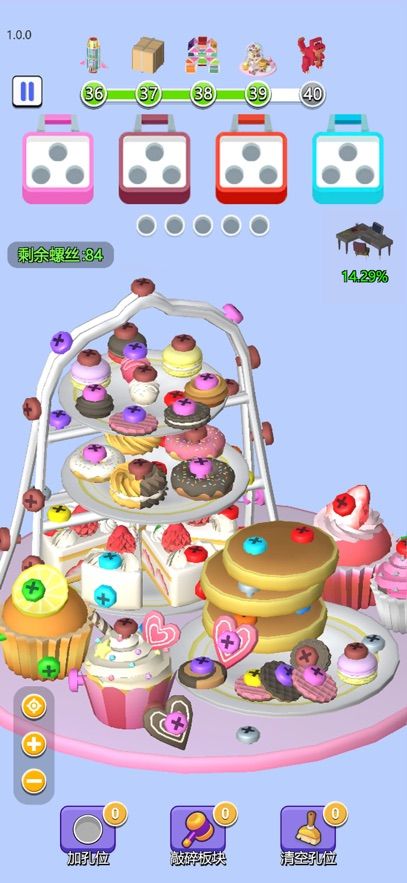 在游戏中,玩家将面对一系列3D立体物品,每个物品表面都镶嵌着多种颜色的螺丝。玩家需要小心翼翼地移除这些螺丝,并根据颜色将它们分类放入对应的盒子中。每完成一个特殊关卡,玩家都会获得丰厚的奖励,解锁地毯、桌子、壁画等装饰品,用来装饰宠物的房间。游戏玩法丰富多样,既考验观察力,又锻炼反应速度。