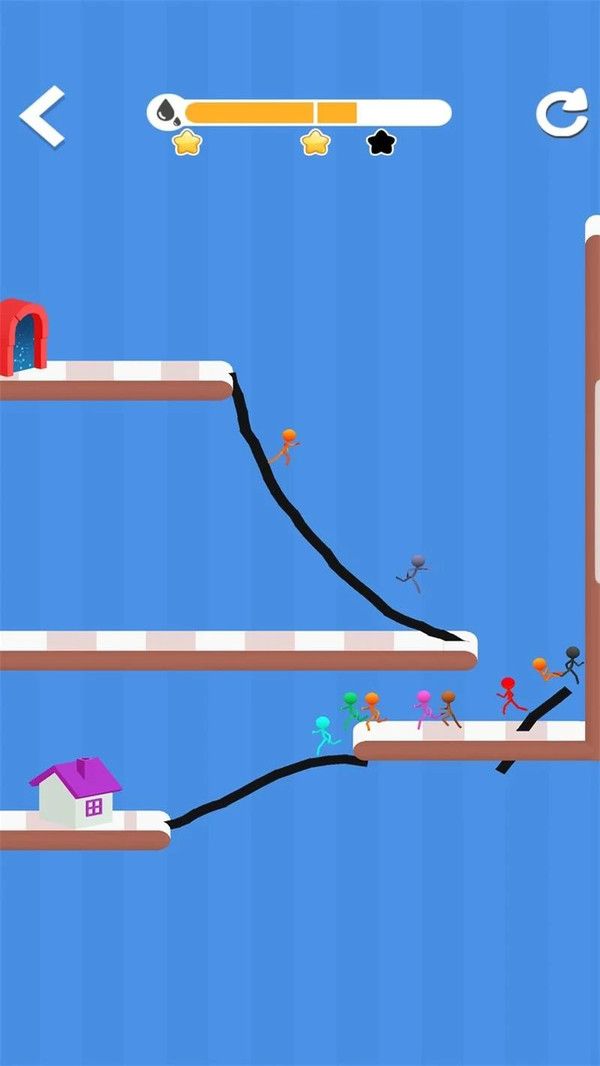 游戏采用循序渐进的设计理念,初期关卡难度较低,给予玩家充分的适应空间,让你能够快速掌握基本操作技巧和游戏机制。随着游戏的深入,你将面对超过数百个精心设计的关卡,每个关卡的难度都会逐步提升,带来更多富有挑战性的谜题。这些关卡不仅考验你的逻辑思维能力,还需要你发挥天马行空的想象力来寻找最佳解决方案。游戏中那支神奇的画笔将成为你最得力的工具,通过绘制各种形状的线条,你可以为小人们搭建安全的回家之路。值得注意的是,每个关卡只有一次挑战机会,这要求你在落笔前必须深思熟虑,确保每一滴墨水都用在刀刃上。