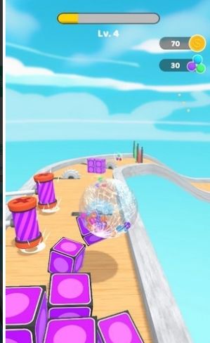 游戏的核心玩法是控制玻璃球在各种复杂的赛道上保持平衡并顺利前进。赛道中会随机出现各种障碍物,如高速旋转的圆盘、来回移动的桥梁、突然升起的垂直障碍等,这些都需要玩家及时做出反应。游戏的操作方式非常直观简单,玩家可以通过手机的重力感应功能来控制小球的方向,只需左右倾斜手机或滑动屏幕即可。这种操作方式让游戏既容易上手又充满挑战性,特别是在高速前进时,需要玩家全神贯注地应对各种突发状况。