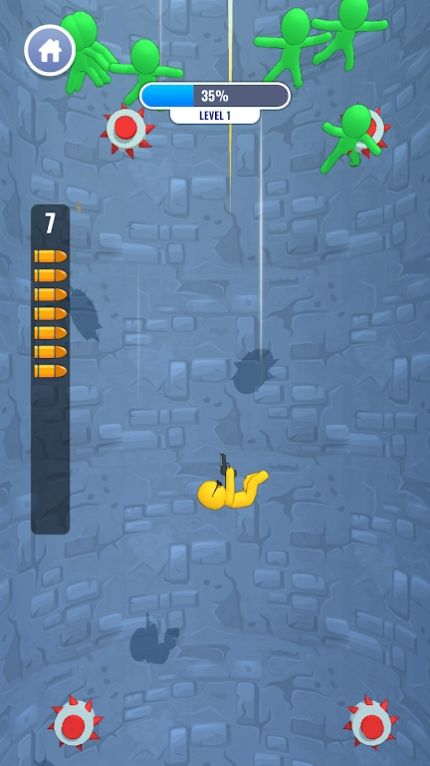 《跌落求生》是一款充满创意与挑战的像素风格冒险游戏,它将为玩家带来前所未有的求生体验。在这款游戏中,你将扮演一位勇敢的冒险者,在不断下落的场景中展开惊险刺激的旅程。游戏的核心玩法既简单又富有深度:你需要灵活操控角色,避开危险的机关陷阱,同时还要警惕那些潜伏在暗处的绿色小人。这些敌人会伺机而动,一旦被他们触碰到,你的冒险之旅就可能提前结束。不过别担心,你可以使用各种武器进行反击,保护自己并继续前进。游戏的精妙之处在于,它巧妙地将下落的速度感与策略性相结合,让每一次跳跃和闪避都充满紧张感。