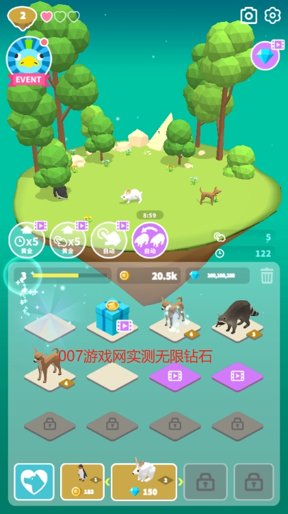游戏操作简单直观,玩家只需拖动两个相同的动物进行合成,就能创造出更高级的动物品种。每当解锁更高等级的动物时,都有机会打开神秘宝箱获得丰厚奖励。游戏场景中还隐藏着许多惊喜,在空白处轻点就有机会获得金币等珍贵资源。这些简单易懂的操作方式让各个年龄段的玩家都能轻松上手,享受游戏的乐趣。