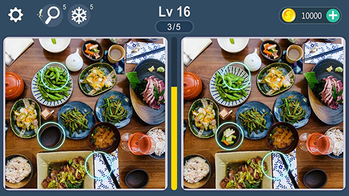 进入关卡1后,系统会展示两张看似相同的美食图片,玩家需要重点观察红色箭头标注的区域,仔细比对餐具摆放、食材颜色等细节差异。建议先锁定明显变化如餐盘形状或装饰物增减,再逐步排查其他细微差别。