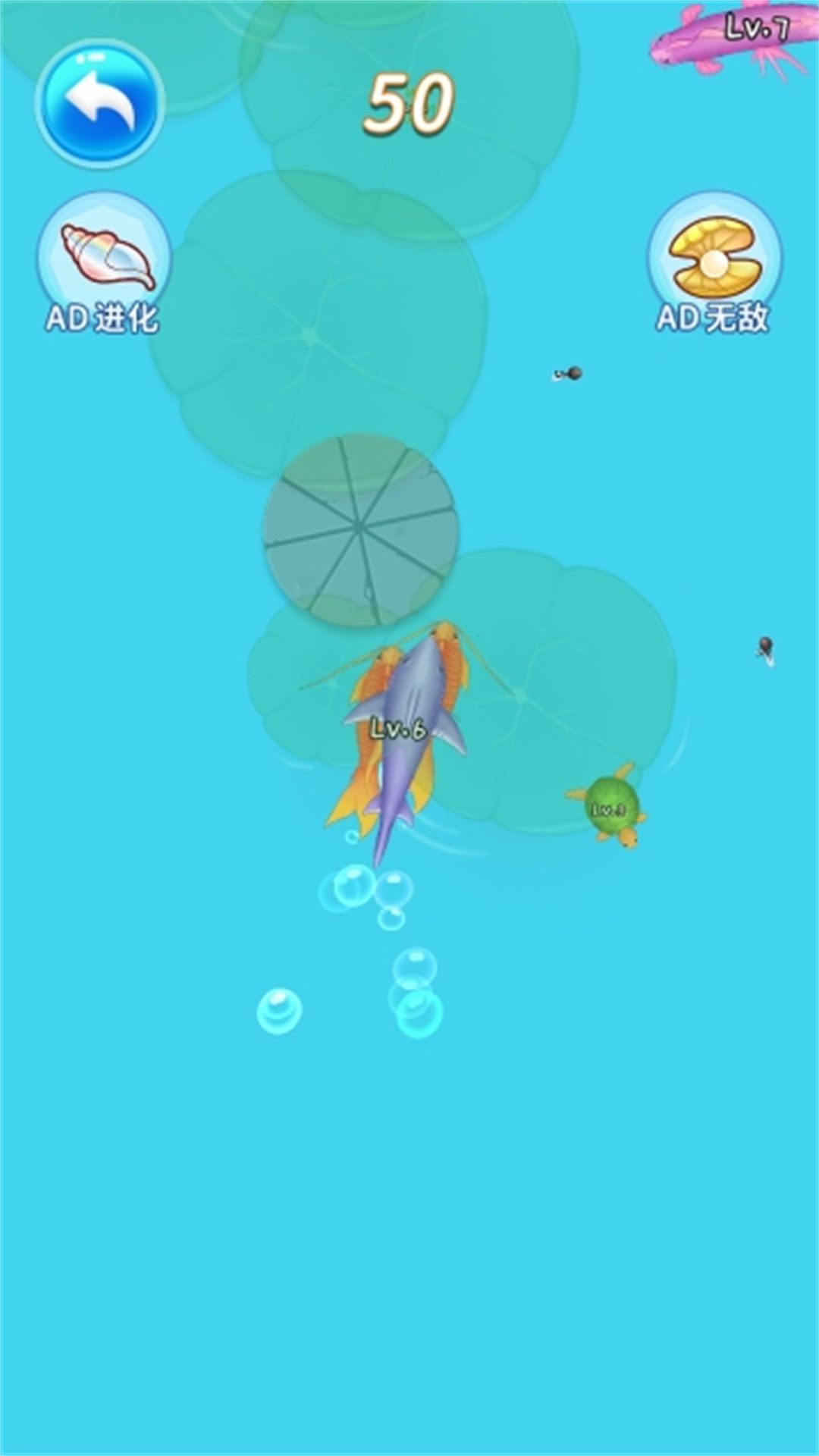 游戏中的每一种生物形态都拥有独特的等级和分数设定,玩家需要通过精心策划合成路径,帮助小蝌蚪一步步完成蜕变。游戏采用清新可爱的画风,池塘场景栩栩如生,让玩家仿佛置身于一个真实的水下世界。特别值得一提的是,合成机制非常直观易懂,只要将两只同等级的生物合并,就能立即进化成更高阶的形态,这种即时的成长反馈让人欲罢不能。