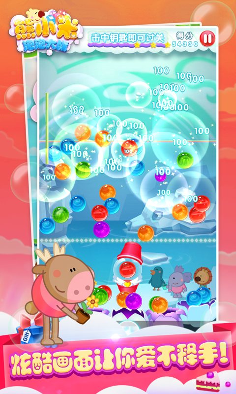 独特的角色技能:游戏中有5位主角,每个主角都有独特的特色技能,帮助玩家轻松过关。比如小熊可以发射强力泡泡,大象能清除整排泡泡,这些技能不仅实用还充满创意,让游戏策略性大大提升。
