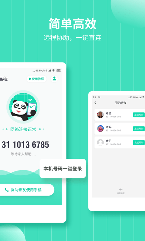 《熊猫远程协助》不仅是一款实用的工具类应用,更是一款充满温情的亲情关怀软件。它采用简洁直观的界面设计,让用户能够快速上手,无需复杂的学习过程。应用支持高清屏幕共享功能,只需开启辅助服务即可免ROOT远程协助,避免了繁琐的权限设置问题。此外,它还提供云端存储功能,可以保存协助记录,方便用户随时回顾操作步骤。实时语音通话功能让远程教学更加生动,用户可以通过语音指导亲友完成操作,就像面对面交流一样自然。全屏远程操作模式打破了空间限制,让用户能够身临其境地帮助亲友解决问题,真正实现"把家带在身边,让亲情更近一点"的理念。