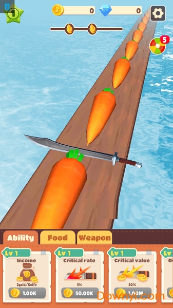 游戏的核心玩法非常简单,只需点击屏幕即可切割各种蔬菜和水果。玩家可以经营自己的切割店铺,收集各种酷炫工具。在砧板上完成切割任务,赚取金币来升级刀具,解锁更多蔬果种类,并逐步扩大店铺规模。