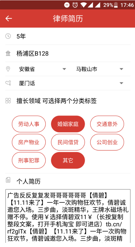 订单账单功能采用智能分类系统,可自动识别账单类型并生成可视化报表,让财务流水清晰可查。我的订单模块集成了进度追踪和客户管理,支持多条件筛选和智能提醒,确保每个案件都能得到及时处理。海量案源中心不仅包含常规法律咨询,还提供专业领域细分服务,通过智能匹配算法为律师精准推送适合的案源机会,同时配备文书模板库和案例参考系统。