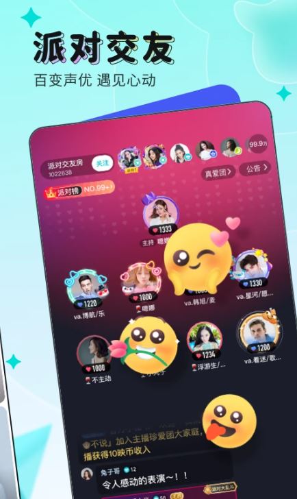 平台提供多样化的线上社交场景,包括主题派对、兴趣小组、相亲活动等,满足用户不同社交需求。每个派对都有专属主持人引导互动,确保参与体验既轻松又有趣。