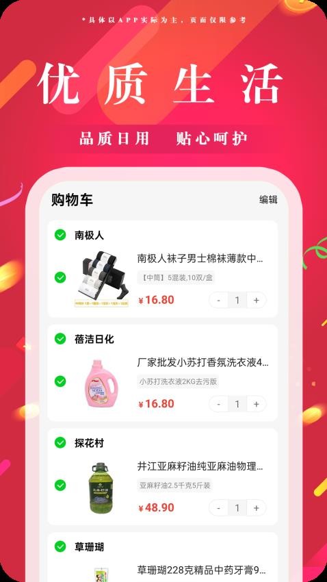 平台严格把控商品质量,所有商品都经过专业质检,确保用户购买到正品好物。同时提供完善的售后服务,让用户购物无忧。