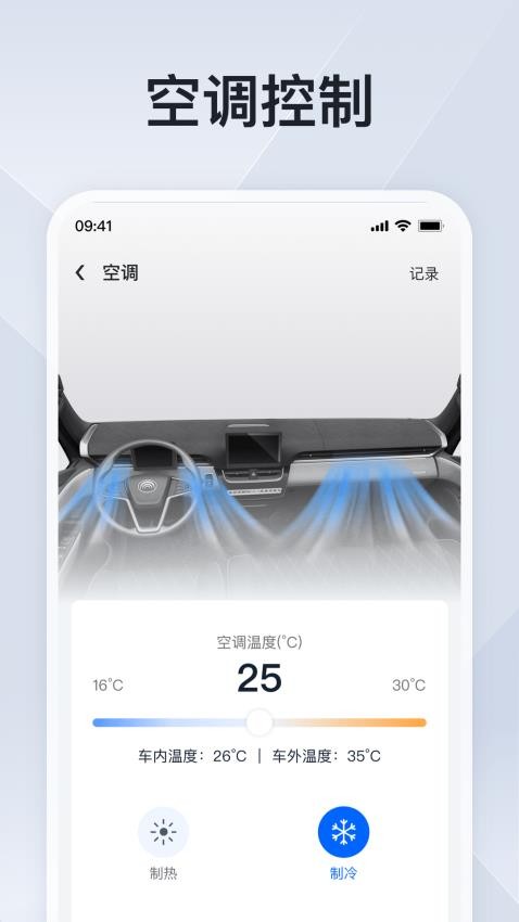进行空调控制操作,可自定义选择制冷或制热模式,还能查看历史控制记录;空调控制支持情景模式设置,如"快速降温"、"预热"等一键操作,提升使用体验。