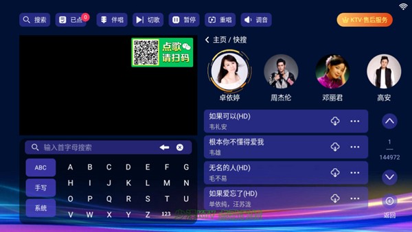 作为一款全能型K歌软件,少泽KTV提供了全方位的娱乐体验。用户可以通过歌名、歌手、分类等多种方式快速检索歌曲,更支持手机APP远程点歌,彻底解放遥控器的束缚。在歌手分类上,软件细分为华语男歌手、华语女歌手、欧美男歌手、欧美女歌手等十余个专业类别,每个分类下都收录了该歌手最完整的作品集。此外,软件还特别设置了影视原声、综艺live、说唱音乐、民谣精选、校园歌曲、经典金曲、情歌对唱、军旅歌曲、摇滚乐、励志歌曲等特色分类,满足不同年龄段、不同喜好的用户需求。