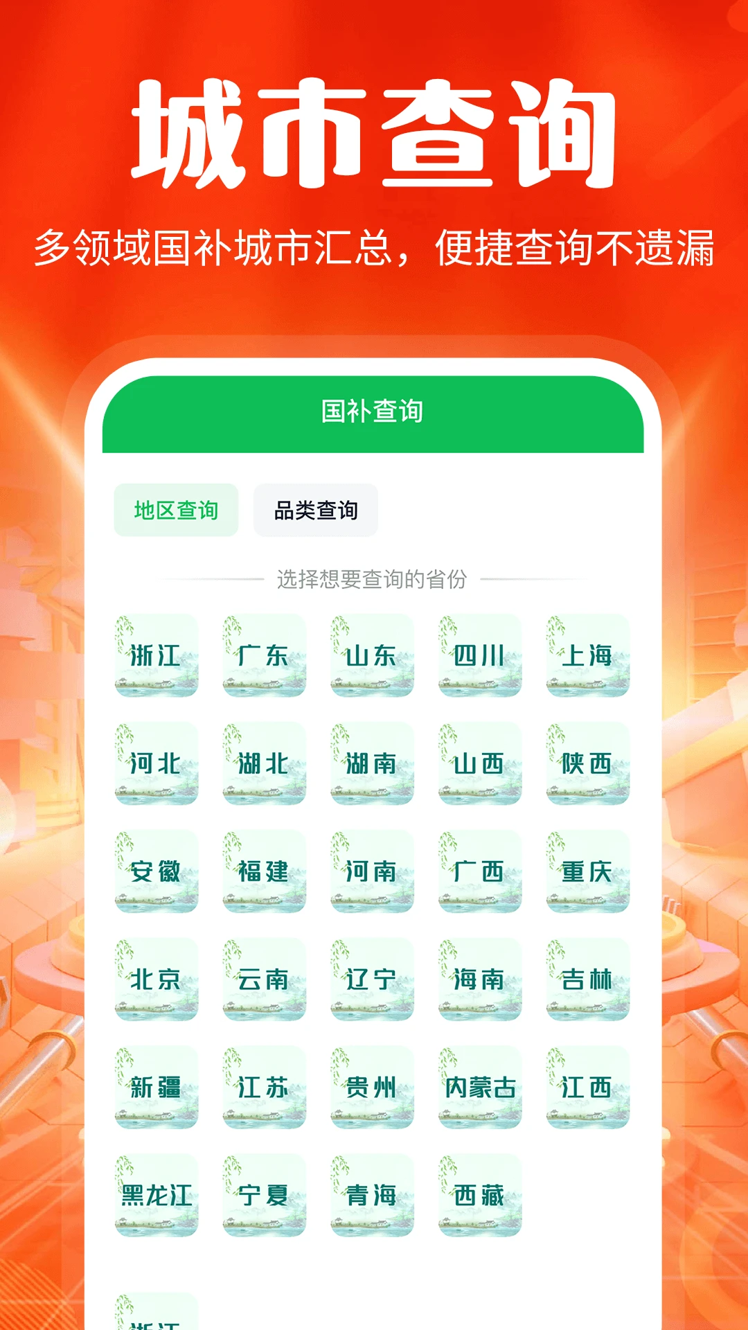 地区查询:进入APP后,选择所在城市,即可快速获取当地的补贴政策。
