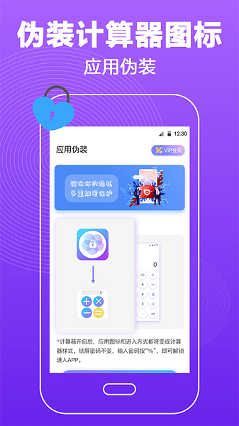 照片视频隐藏功能让您的私密内容彻底隐形,即使手机被他人使用也不会被发现。独特的伪装计算器功能让应用图标完美融入系统,任何人都不会起疑。强大的加密存储系统确保您的所有私密数据都被牢牢锁住,未经授权无法访问。便捷的应用上锁功能让您只需一键就能锁定所有敏感应用,防止他人随意查看。