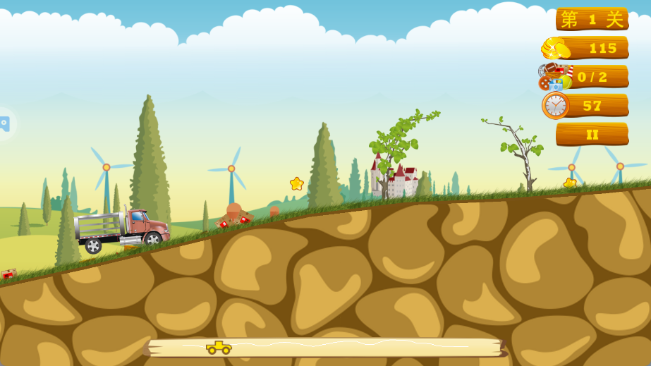 游戏开始时,玩家首先需要从多个特色赛道中选择适合自己的运输任务。系统提供两种直观的操作方式:一种是利用设备的重力感应功能,通过左右倾斜手机来控制卡车转向;另一种是通过屏幕触控,点击左右两侧虚拟按钮来操控方向和速度。新手玩家可以在初级赛道中逐步适应卡车的操控特性,感受不同路况下的驾驶手感。