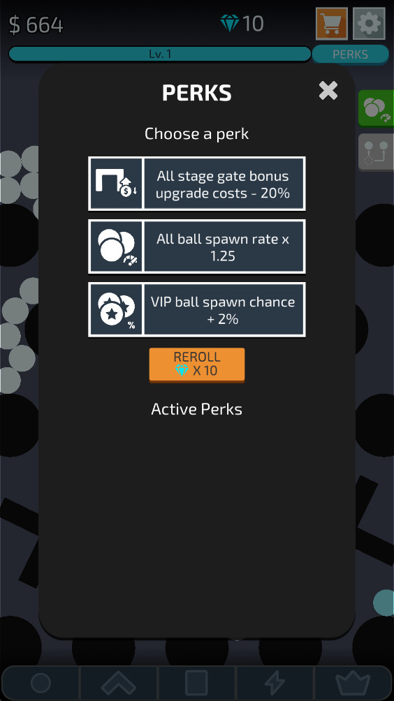游戏的核心玩法简单易上手但富有深度。在游戏过程中,上方的球体会自动下落,你需要通过精准的操作来引导它们避开各种障碍。当收集到足够数量的球体后,点击屏幕下方的升级按钮就能提升你的能力。游戏中的球体采用了多彩的设计,每种颜色都代表着不同的价值,收集高价值的球体能让你更快地获得升级资源。