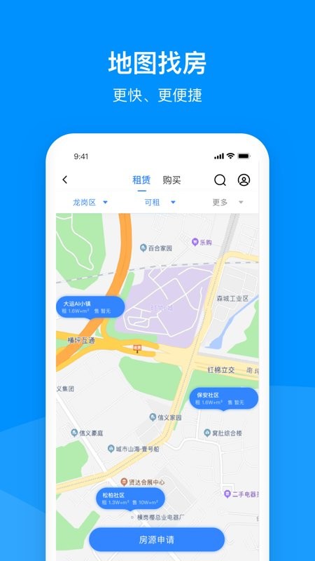 以移动互联网为载体,依托大数据云计算技术,平台实现了产业资源的数字化管理和智能分析。作为龙岗区首个产业空间综合服务平台,app整合了全区3万余栋产业建筑和6平方公里待开发用地数据,通过智能匹配算法为不同规模企业推荐合适空间。平台还提供政策解读、申报指导等增值服务,并支持在线预约看房、电子签约等功能,真正实现产业空间服务的全流程线上化操作,大幅提升企业选址效率。