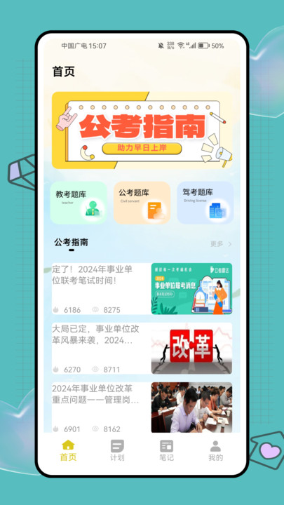 下载安装最新版本后,首次启动需授予必要的存储权限。进入应用后,清新直观的首页界面会展示各类备考资源入口,包括建工、财经、医卫等十余个专业领域的题库分类。在计划板块中,用户可自定义学习时长和科目,系统将自动生成符合番茄工作法的学习时间表。笔记功能支持文字、图片、语音多种记录方式,并可通过标签分类管理,方便随时回顾重点内容。