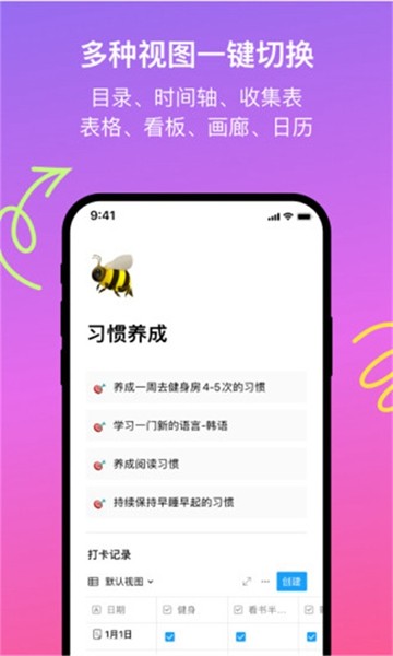 在文档笔记方面,flowus息流支持一键插入文字、表格、代码、音视频等多种内容元素,还能嵌入第三方服务,充分满足不同场景下的创作需求。多维表功能在传统数据管理基础上融合了在线协作和信息可视化能力,用户可以通过一键切换多种视图来构建个性化的业务管理系统。文件夹功能支持多格式文件的高速上传、下载及预览,让用户随时随地都能查看和编辑文件。团队协作功能则通过搭建专属空间,帮助团队结构化沉淀工作流程,实现多人实时协同。软件还提供强大的数据迁移能力,支持导入多种格式的本地文件,让用户可以零成本开启知识管理新体验。