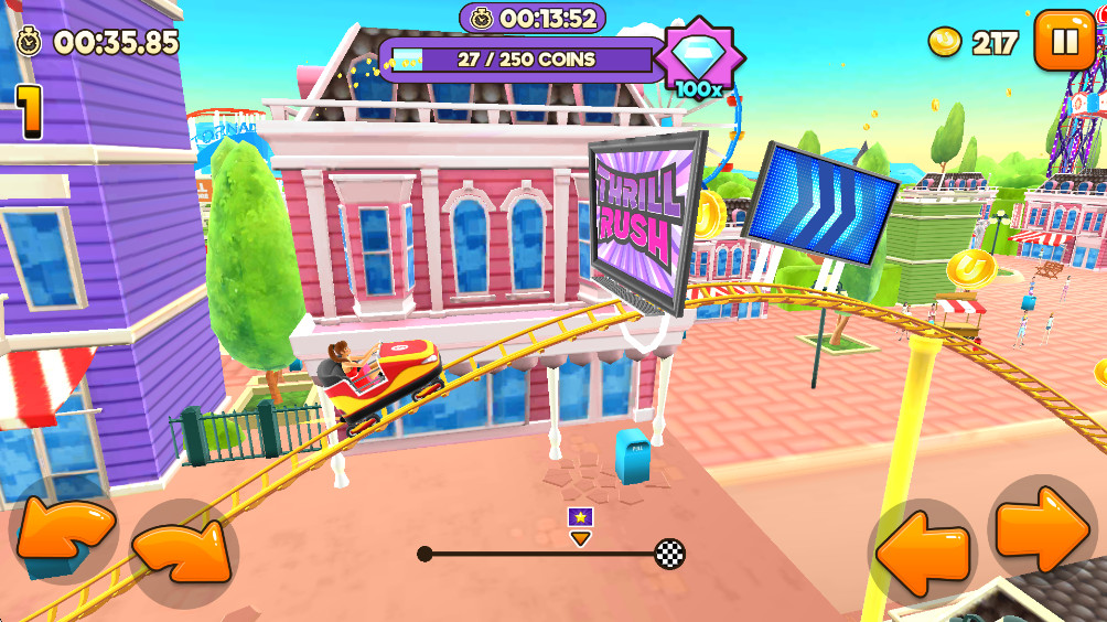 进入游戏后,首先需要选择心仪的角色形象,每位角色都拥有独特的初始属性加成。游戏界面左下角的按键用于控制过山车在高空翻转时的平衡调整,右下角则负责前进和后退的移动操作。完成每个关卡挑战后,系统会根据你的表现给出星级评价,并奖励相应数量的金币。这些金币可以用来解锁新的游乐设施或升级现有设备,让你的乐园更具吸引力。随着游戏进程推进,你还将解锁更多特殊道具和装饰元素,为游客创造更丰富的游玩体验。