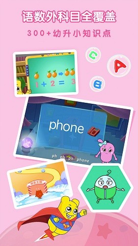 结合图片教学,每个汉字拼音和英文单词都配有生动形象的插图,通过视觉联想帮助孩子加深记忆。动画授课形式,课程内容全部采用高品质动画呈现,可爱的卡通角色引导学习,大幅提升孩子的专注力。情景教学方法,将知识点融入日常生活场景,如超市购物、公园游玩等,让孩子在熟悉的环境中轻松理解。发音方法演示,通过3D口腔模型动态展示拼音发音时的舌位和口型,帮助孩子掌握标准发音技巧。数学运算学习,从10以内加减法开始,循序渐进地引入乘除法概念,配有实物图示辅助理解。随意切换题库,系统内置600多套不同难度等级的练习题,家长可根据孩子水平自由选择适合的内容。