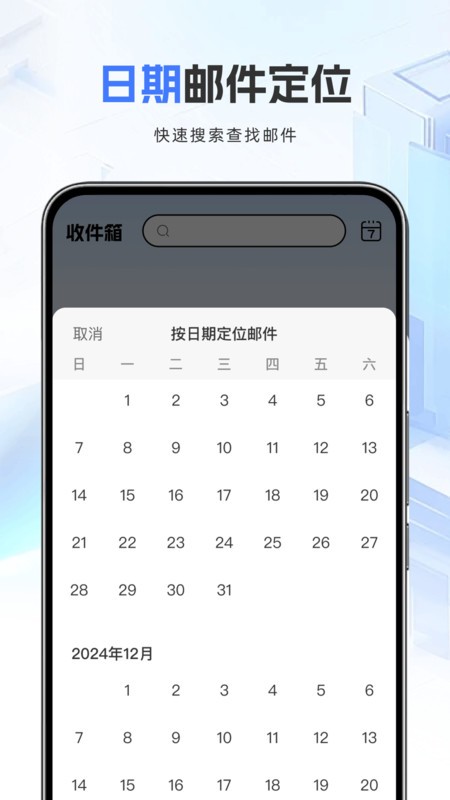 支持通过日期定位的方式快速查找邮件,便于能精准查看某天的往来邮件;可按年、月、日多级时间轴浏览,历史邮件一目了然。
