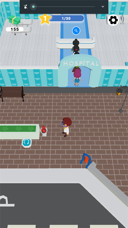 玩家可以通过虚拟摇杆操控角色在诊所内自由移动,当发现标有类似"Level2+"字样的特殊区域时,这往往是解锁新内容或提升诊所等级的重要地点,建议优先前往探索。这些区域通常会带来新的医疗设备或特殊功能。