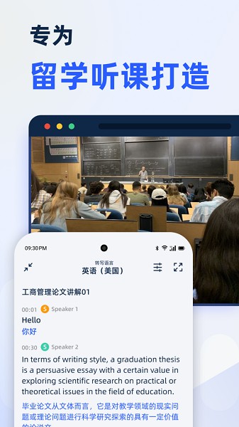 课前建议开启专业学术模式,选择对应学科领域以提升识别精度。连接蓝牙麦克风可获得更佳的拾音效果。课中可使用悬浮窗实时查看转写内容,对重点段落进行即时标记,遇到生僻术语可长按查询释义并加入个人生词本。课后通过时间轴快速浏览课程概要,补充个人注解,AI生成的摘要可作为高效的复习提纲。小组讨论时启用多人模式,系统会自动区分说话人并生成完整的对话记录,支持多人协作编辑,极大提升团队学习效率。