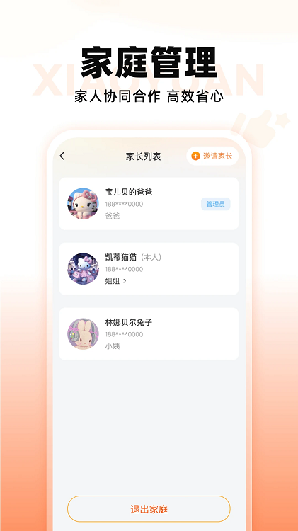 家庭管理 提供多孩子、多设备的统一管理平台,支持家庭成员协同管理。每个孩子可以拥有独立的学习档案,家长可以针对不同孩子的学习特点进行个性化设置。