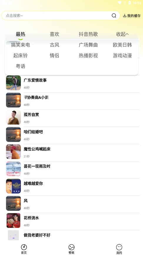 多种类型铃声尽在其中,资源丰富,涵盖流行、摇滚、电子、古典等多种音乐风格,还有影视原声、游戏音效、自然声音等特色内容。创建个人歌单,喜欢的音乐铃声可以分类收藏,建立专属铃声库,方便随时调用。在线播放功能支持流畅试听,随时收听最新铃声,轻松下载设置到手机,操作简单快捷,三步即可完成铃声更换。