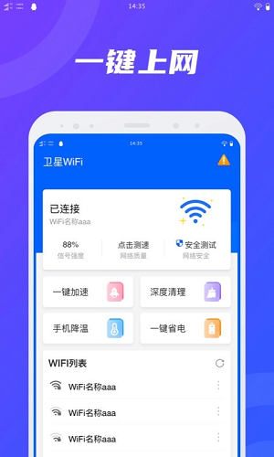 卫星WIFI是一款功能强大的专业WiFi管理工具,致力于为用户提供全方位的网络优化体验。它不仅能够显著增强WiFi信号强度,扩大信号覆盖范围,还能有效防止他人蹭网,确保您的网络安全。此外,软件还集成了垃圾清理等实用功能,帮助您更好地管理手机性能,提升设备运行效率。卫星WIFI采用简洁直观的操作界面,所有功能一目了然,即使是初次使用的用户也能轻松上手,堪称您日常生活中不可或缺的智能助手。