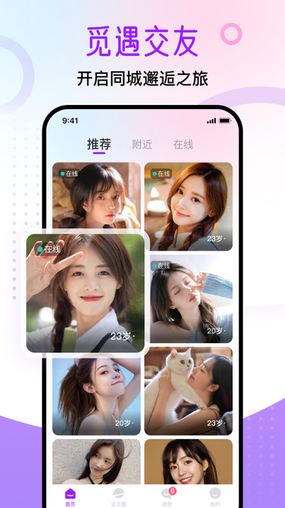 自由的进行互动交流,在这里有很多不同类型的社交玩法,为你带来更多的乐趣。从兴趣匹配到附近的人,从线上活动到线下聚会,平台提供全方位的社交解决方案,满足不同用户的社交需求。