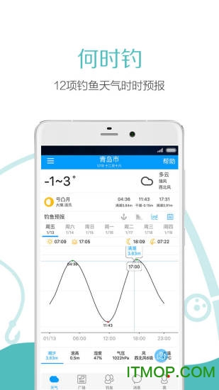 何时钓鱼:软件内置精准的钓鱼专用天气预报系统,可实时查询未来7天的潮汐、浪高、风向、气压等12项关键气象数据,帮助您把握最佳的钓鱼时机,告别空手而归的尴尬。