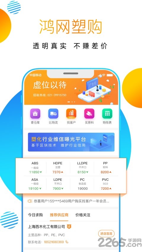 鸿网塑购始终坚持平台中立原则,不参与任何交易环节的差价获利,真正做到让买家省钱、卖家赚钱。凭借专业的服务和良好的口碑,已成为塑化行业用户首选的掌上交易平台,被誉为"移动端的塑料产业城"。