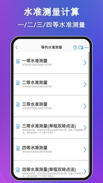 水准测量大师最新版是一款专业水准测量辅助工具,集观测记录与平差计算于一体。软件采用智能化设计理念,支持国家一至四等水准测量标准,特别针对三四等水准测量中的单程双转点法进行了专项优化。无论是工程现场的测量人员还是测量专业的学生,都能通过这款软件显著提升工作效率。其直观的操作界面配合强大的计算功能,让复杂的测量工作变得简单高效,是现代化水准测量的得力助手。