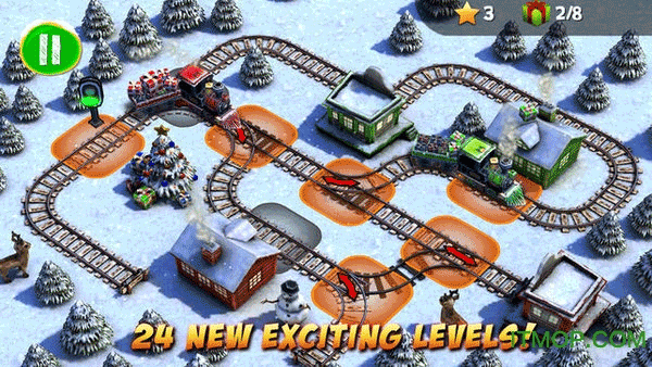 点击主界面绿色按钮,开启圣诞列车危机挑战,进入关卡准备应对后续内容。游戏采用直观的触控操作,玩家可以轻松上手,但需要谨慎规划每列火车的行驶路线。在关卡内观察轨道与列车走向,依实际规划行驶路线,防止列车发生碰撞。特别要注意不同列车的速度差异,适时调整信号灯和道岔。收集关卡里的礼物等物品,达成上方显示的收集数量,争取三星评价通过关卡。每完成一个关卡都会获得相应评分,完美表现将解锁更多隐藏内容。