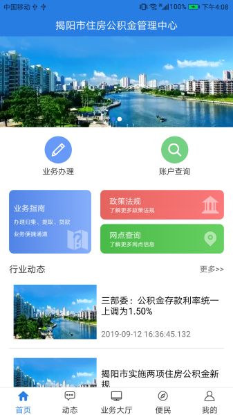 便民服务:提供最新政策解读、业务指南和中心文件信息查询,同时支持服务网点查询、房贷计算器等实用功能。