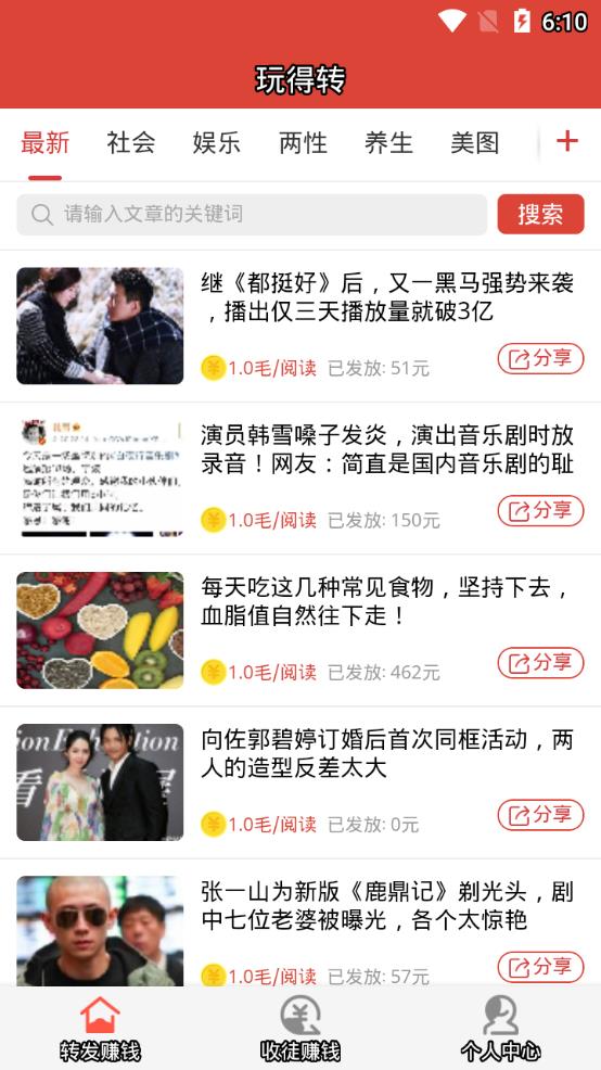 玩得转app是一款集阅读、分享与收益于一体的创新软件,为用户打造了一个既能获取资讯又能轻松赚钱的优质平台。在这里,您可以随时随地浏览海量精选内容,涵盖情感美文、生活百科、幽默段子、社会热点等丰富类别,让阅读成为日常生活中的乐趣与收获。