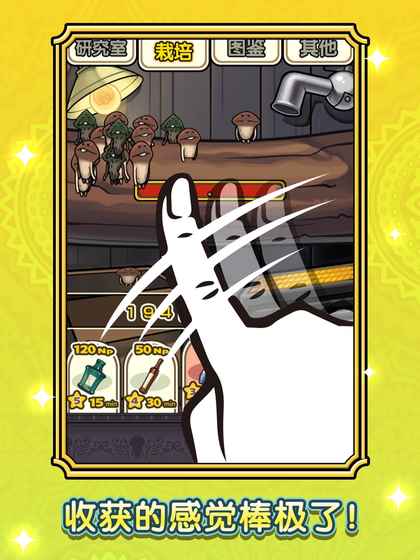 游戏采用真实时间制,玩家需要定期照料自己的蘑菇园。通过点击操作可以给蘑菇浇水、施肥、调节环境参数等。每种蘑菇都有特定的生长阶段,从孢子萌发到完全成熟都需要玩家的精心照料。游戏特别设计了"突变系统",当满足特定条件时,普通蘑菇可能会突变成稀有品种。玩家还可以通过"蘑菇实验室"进行杂交实验,尝试培育出全新的蘑菇品种。完成培育任务可以获得金币奖励,用于购买更高级的培养设备和装饰品来美化自己的蘑菇园。游戏还支持社交功能,玩家可以拜访好友的蘑菇园,互相赠送礼物,甚至可以进行蘑菇交易。