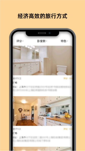 房源列表:在房源列表拥有各种类型的房源信息,任意查找喜欢的房源;列表支持多种排序方式,可按价格、评分、距离等排序。