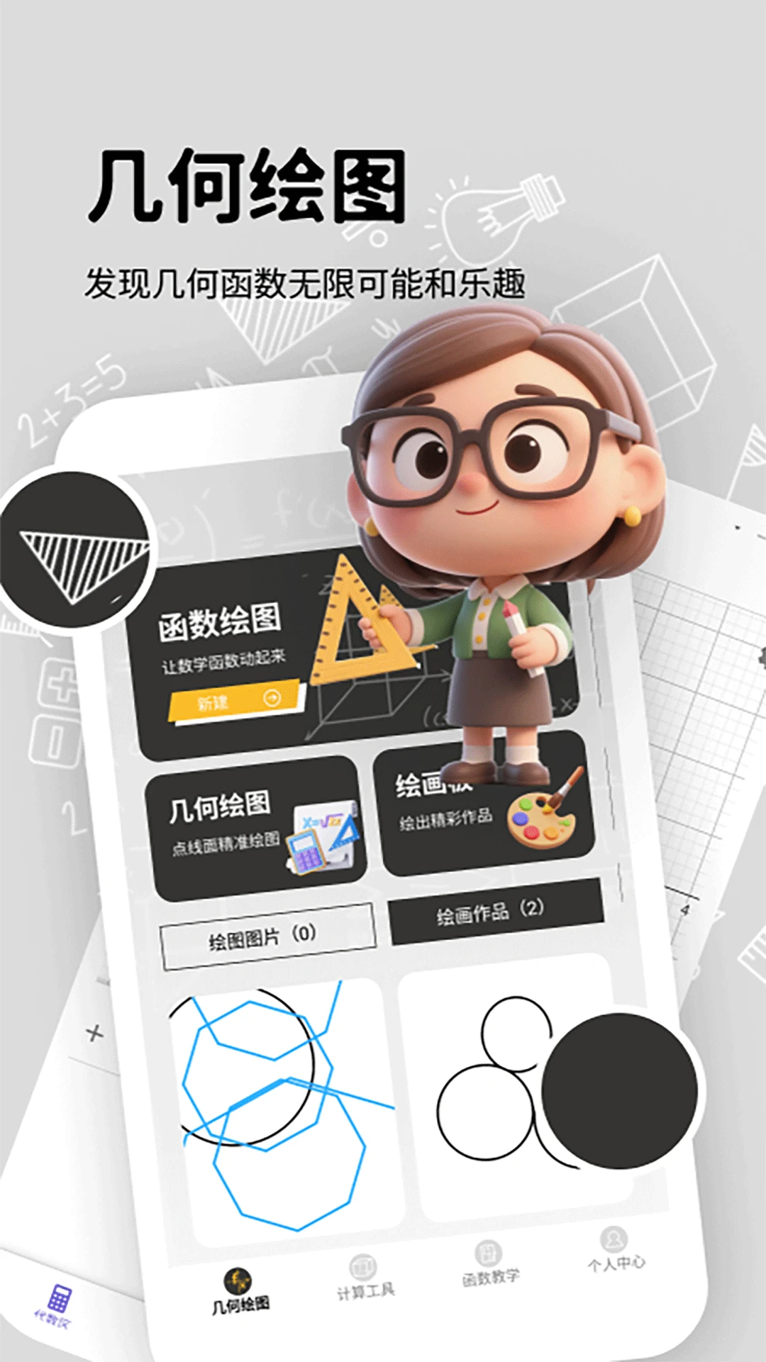 画个箭头画板是专为学生、教师及数学爱好者打造的多功能数学绘图计算应用,集绘图与计算于一体,覆盖从基础绘画到高阶数学应用的全场景需求,让数学学习和教学更高效、更直观!包括了:函数绘图,几何绘图,绘画板,几何计算,函数计算,单位换算,公式提取,公式大全,数学题库,相机,错题库功能,欢迎大家来下载!