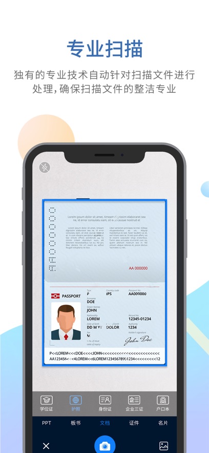 3、扫描文档安全备份,是大家手机上的随身办公扫描仪,随时帮助大家扫描文档,收集文档上所有文字;支持OCR文字识别,可直接从图片中提取文字内容;