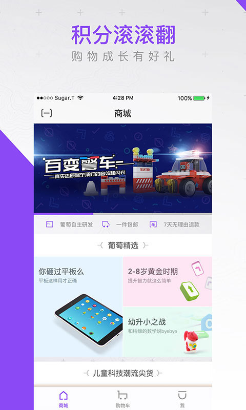 想要为孩子选购优质玩具和科技产品?《葡萄乐园》是你的最佳选择!这款由葡萄科技打造的移动端商城,不仅提供种类丰富的AR儿童科技产品,还能让你享受购物送积分、新用户专享礼包等超值优惠。在这里,你可以轻松了解最新潮的儿童科技新品,参与各类促销活动,实时跟踪物流信息,还能与其他家长分享购物心得。快来下载《葡萄乐园》,开启智能育儿新体验!