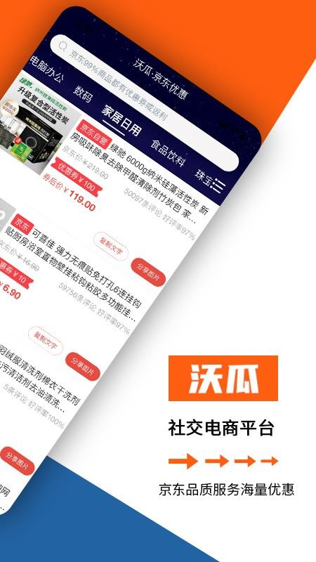 《沃瓜》是一款专注于为用户提供省钱购物体验的智能平台。作为京东商城的优质合作伙伴,该软件汇聚了电脑办公、数码电子、家居日用、食品饮料等全品类商品资源,让用户能够一站式购买京东商城的所有商品。平台最大的特色是提供丰富的优惠券资源,用户通过领取专属优惠券购物,可比直接在京东下单节省更多开支。此外,沃瓜还创新性地加入了社交电商功能,支持用户通过分享商品信息赚取收益,真正实现了"购物省钱,分享赚钱"的双重价值。