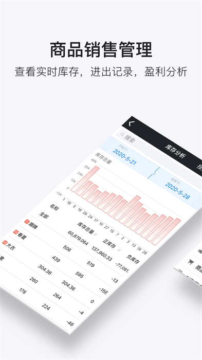 软件简单易用,一秒即可查看到库存最多、库存最少、销量最高、销售额最高的商品,帮你轻松管理店铺;可视化数据看板让经营状况一目了然