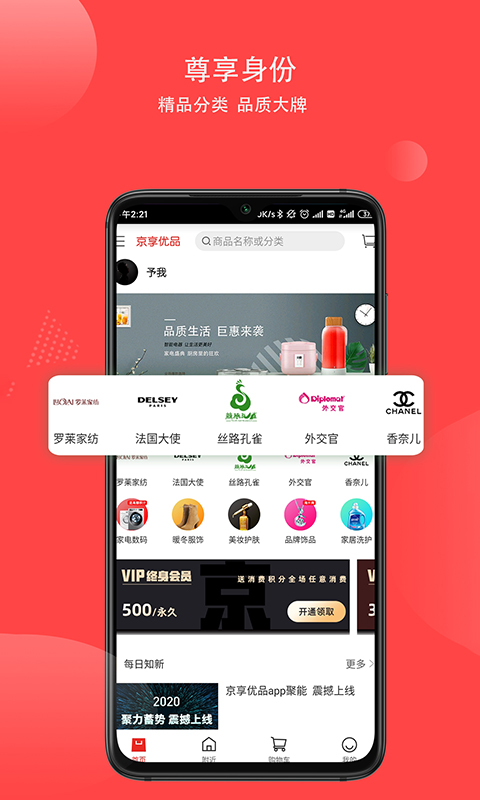 京享优品app下载,这是一款专为品质生活打造的消费服务平台,致力于为用户提供更多福利与惊喜。在这里,您可以轻松浏览海量精品好物,从日常用品到高端定制商品应有尽有。平台严格把控商品质量,确保每一件商品都经过精心挑选,让您享受正品保障。无论是寻找独特的高定款,还是发现超值优惠,京享优品app都能满足您的需求。立即下载,开启您的品质生活之旅!