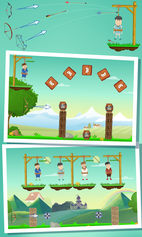 作为弓箭手们中的一员,您必须使用弓箭,小心地准确的射击绑住人们的绳子,还不可以射到到上面的人。射断绳子就可拯救人们。游戏中有多种形式的道具和传送,帮助弓箭手们完成拯救。游戏还设有全球排行榜系统,你可以和来自世界各地的玩家一较高下。精心设计的成就系统将记录你的每一个进步,从新手到大师的成长之路充满乐趣。快加入拯救弓箭手大作战的阵营中,成为最强射箭达人。