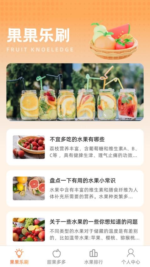 独特的水果知识大全:甜果乐刷拥有海量水果知识库,涵盖水果的分类、生长周期、适宜气候、营养成分等全方位内容。用户可以通过分类浏览或关键词搜索快速获取所需信息,同时还能收藏感兴趣的内容以便随时查看。科普内容更新及时:每天都会推送最新的水果科普文章和行业动态,确保用户紧跟水果领域的发展趋势。无论是新品种的上市还是营养研究的最新成果,都能第一时间获取。用户交流互动平台:软件内设有活跃的社区板块,用户可以在这里发布自己的水果心得、提问疑惑,还能参与话题讨论。专业的营养师和水果专家也会定期入驻,为用户提供权威解答。