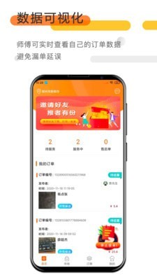 在首页中,您可以清晰查看各类订单分类,包括家电维修、水电安装、管道疏通等,同时还能发现高额任务,帮助您优先选择高收益订单。